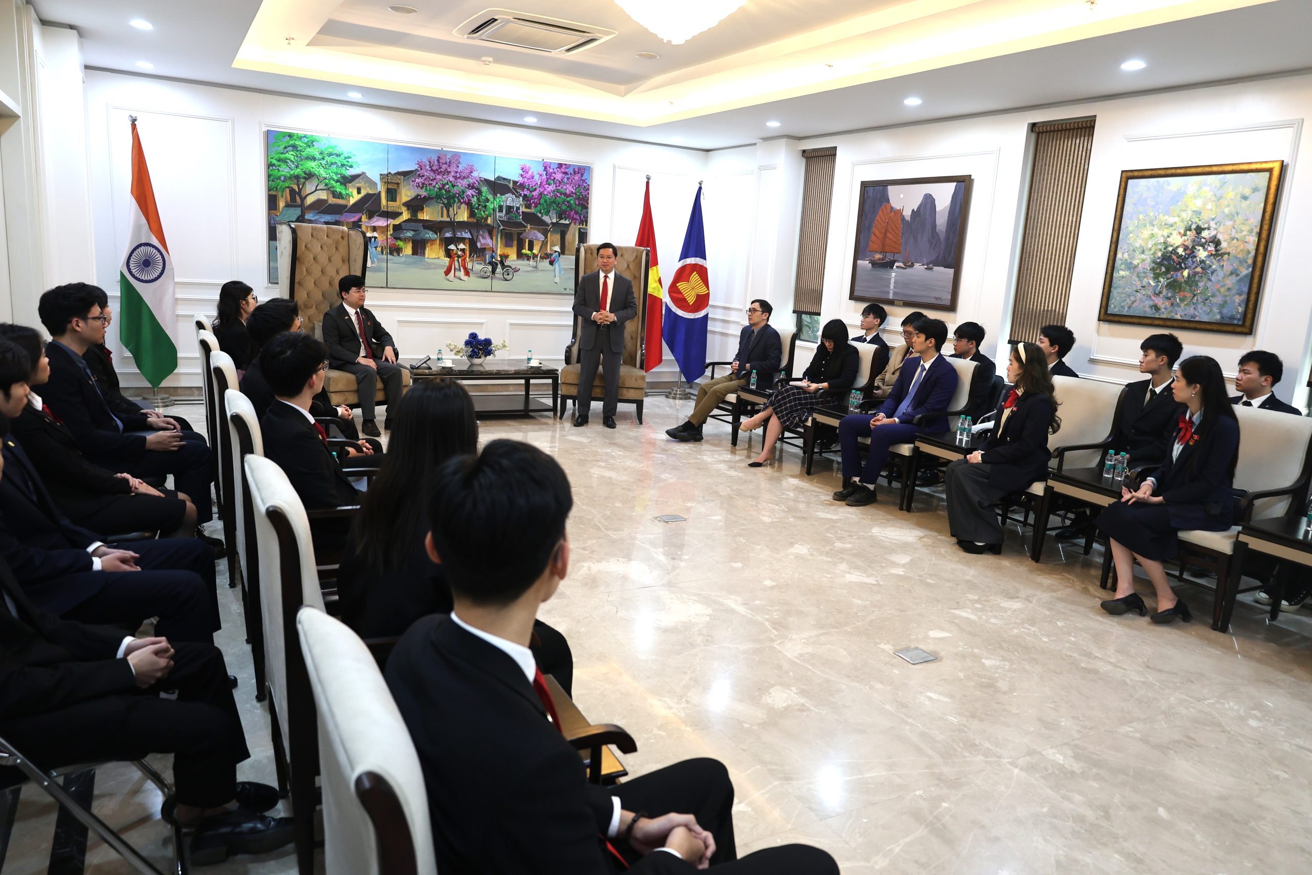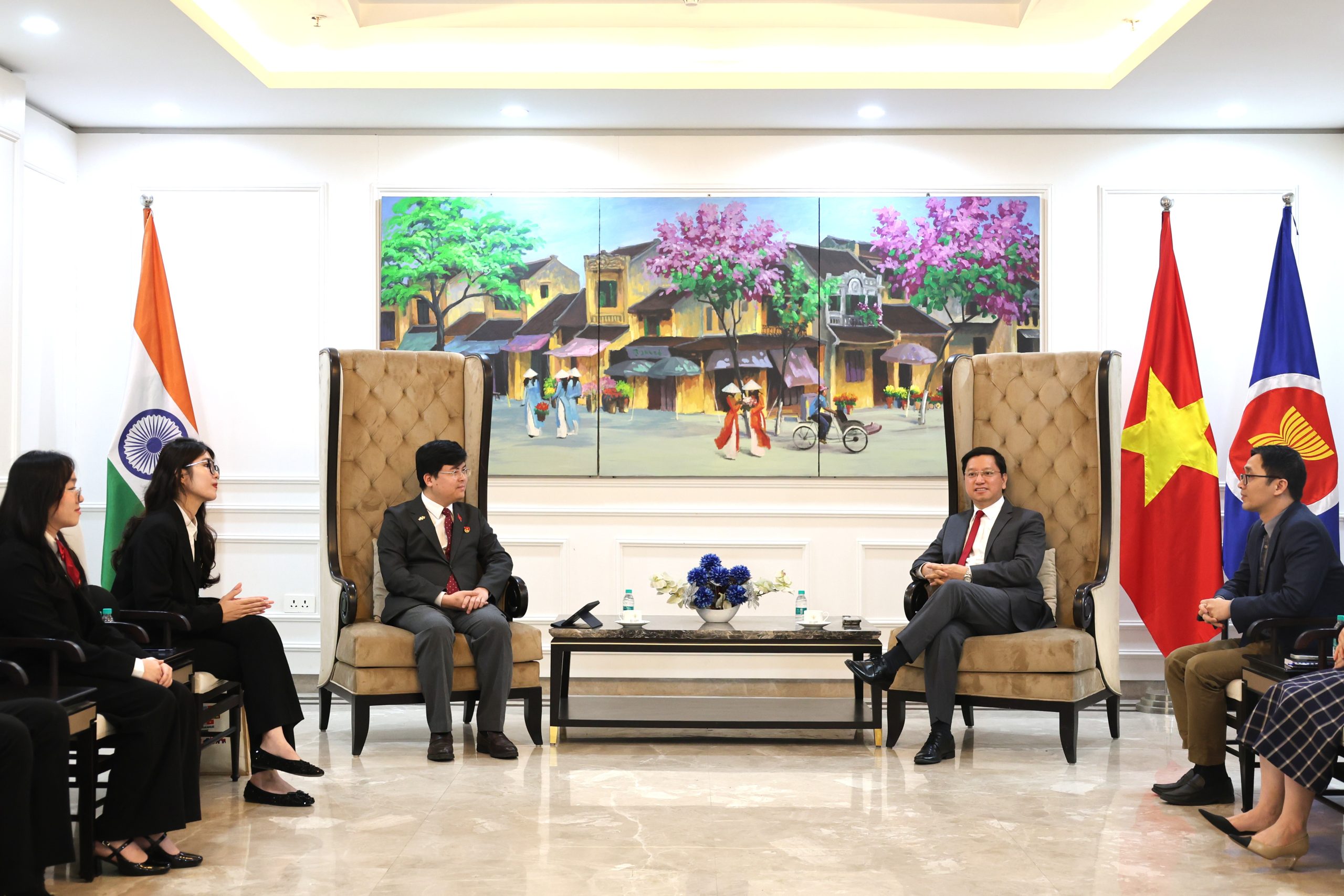 On 21 January 2026, at the Embassy of Viet Nam, Ambassador Nguyen Thanh Hai held a fruitful discussion on people-to-people diplomacy and youth exchanges between Viet Nam and India with a delegation of the Central Committee of the Ho Chi Minh Communist Youth Union, led by Mr. Hoang Duc Nam. The meeting was attended by 12 Youth representatives from Viet Nam and the Vietnamese Student Association in India. The delegation is participating the Exchange programme in New Delhi (19–26 January) at the invitation of the Indian National Cadet Corps.