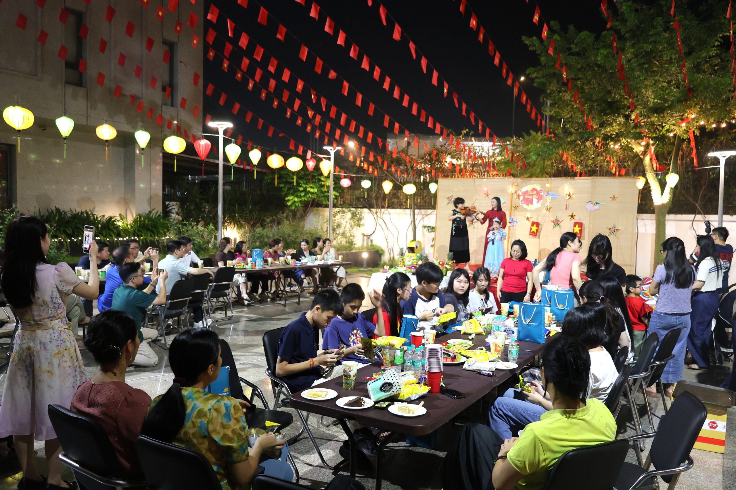 On October 4, 2025, the Embassy of Viet Nam in India organized a warm and joyful Mid-Autumn Festival celebration for the children of officials from the Embassy and neighboring Vietnamese agencies. The children enjoyed a festive evening filled with lantern processions, moon gazing, music and dance performances, and the traditional Mid-Autumn feast featuring mooncakes and various delicacies. They also received meaningful gifts from Ambassador Nguyen Thanh Hai and the representative of Vietnam Airlines in India. The event was lively and heartwarming, bringing the children a joyful and memorable Mid-Autumn night.